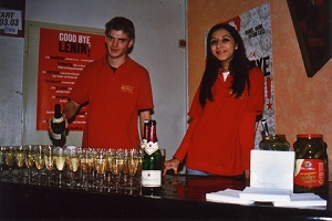 und einem Glas Rotkäppchen-Sekt ein. |
