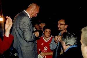 seinen Fans mit Autogrammwünschen bestürmt.