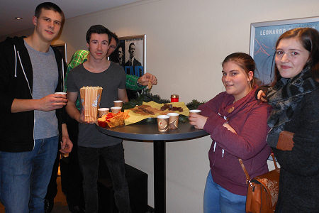 Mittwoch vor Weihnachten die Besucher der Sneak Preview zu Glühwein und