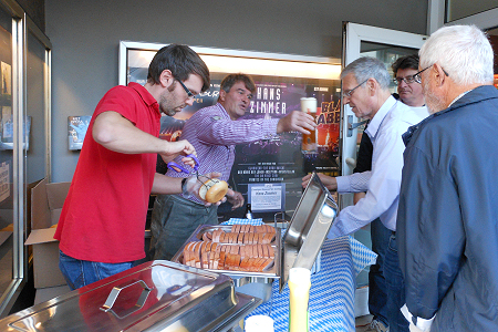 alle Gäste Fleischkäs-Semmel und echtes bayerisches Bier bereit.
