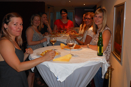 wir alle Damen mit einem Mango-Sprizz.