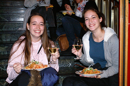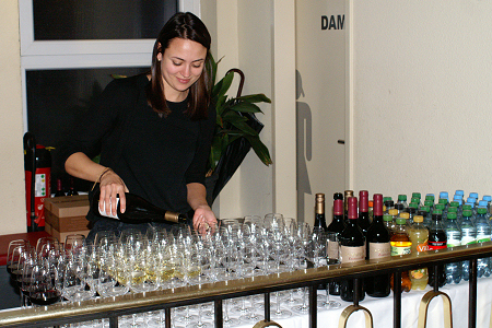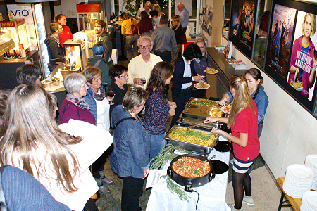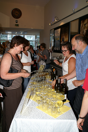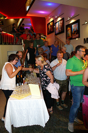 Spezialitätenteller und französischen Wein im Kinofoyer.