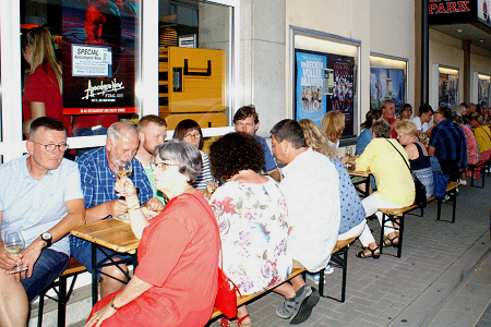 Gäste mit einer echten Bowle. Die Fotos zeigen Roxy-Theaterleiter Michael