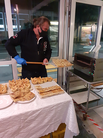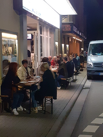 der Corona-Abstände, auf Biergarnituren vor dem Haus Platz nehmen konnten.
