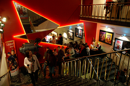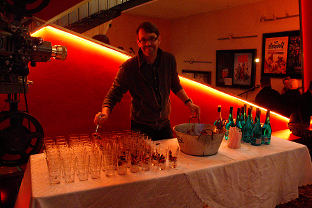 alle Gäste mit einem "Eierlikörchen" im Kinofoyer, vor Filmbeginn präsentierte