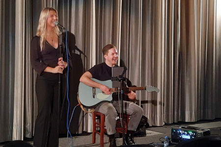 im Foyer stimmte Liz Gaal, musikalisch begleitet von Josch Kubetz, mit